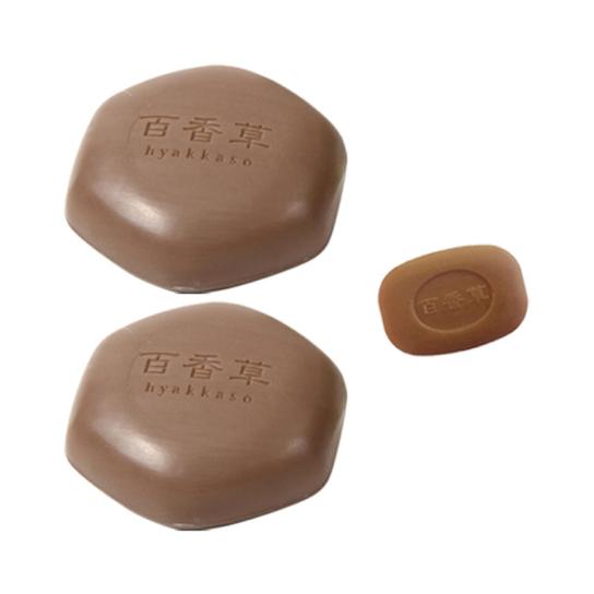 - 石ケン素地、バクハン石、木酢液、ドクダミエキス、シャクヤクエキス、甘草エキス、オウバクエキス、キョウニンエキス、オタネニンジンエキス、トウニンエキス、アロエベラエキス、カワラヨモギエキス、トウキエキス、ウイキョウエキス、オウレンエキス、カッコンエキス、クチナシエキス、ウヤクエキス、センキュウエキス、シコンエキス、サンザシエキス、ビャクダン油、グリセリン、オリーブ油、水