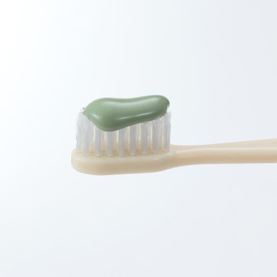 さわやかなヒノキの香りがするペーストには、抗菌性の高いプロポリスを配合。また、一般的なハミガキ粉のような泡立ちがないのが特徴。泡立ちにくくすることで成分が歯と歯茎にピッタリ密着し、お口の中を清潔に保つようにしています。 -