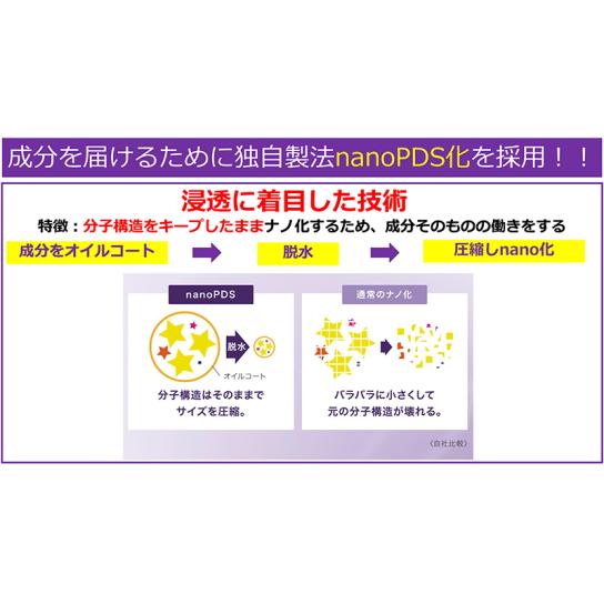 肌に浸透しにくかった成分を、浸透しやすいよう独自技術で「ナノPDS」しました。