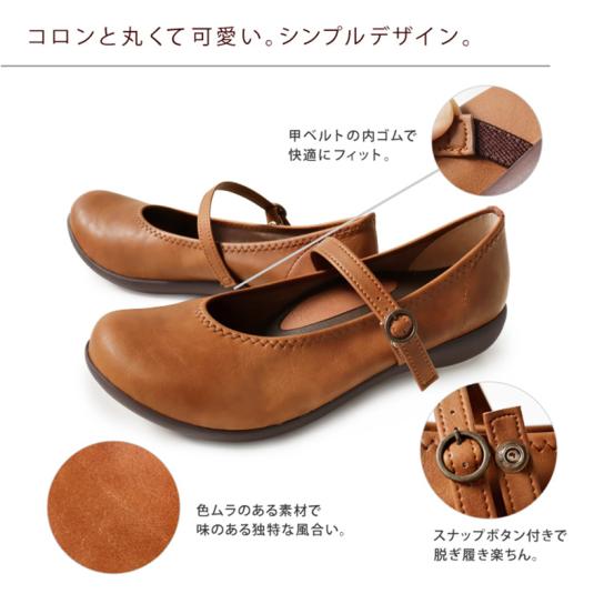 甲部分の細めストラップが足をホールドし、脱げにくさとすっきりした印象を両立。スナップボタン仕様で、着脱のしやすさにも配慮しています。ローヒール設計なので、日常使いしやすい一足です。<メーカー希望小売価格>