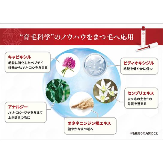 育毛ブランドならではの毛髪科学を応用し、薬用育毛剤で実績のある成分に加え、まつ毛のために厳選した有用成分を配合。