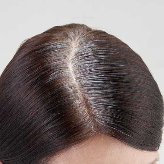 どんな髪色にもなじみやすいダークブラウンカラーで白髪部分に重ねるたびに徐々に色がつき、メイク効果で自然な印象を演出します。