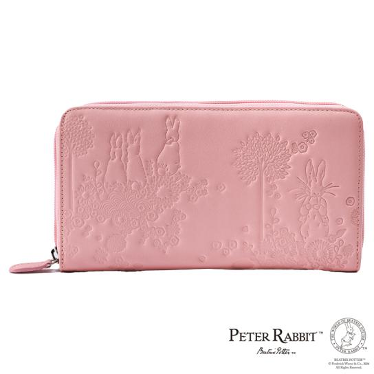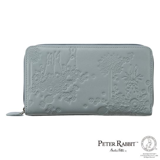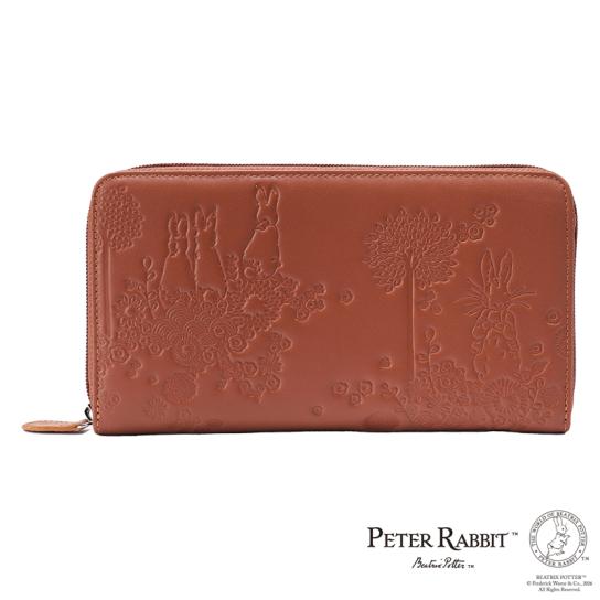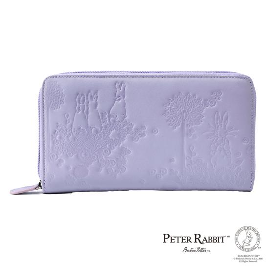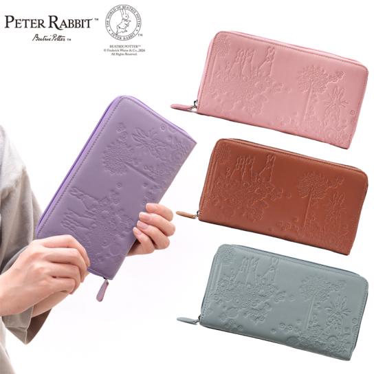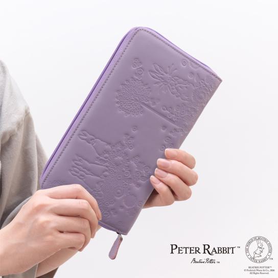高級感のある本牛革を使用し、ピーターラビット™の型押しが愛らしいラウンド長財布。大きく開く設計で中身が見やすく、ちょっとしたお出かけに便利なスマホ対応ポケットも備えています。