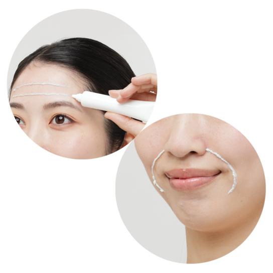 - スキンケア後、気になる部分に少量ずつムラなく伸ばしてご使用ください。その後、普段お使いのファンデーションなどでメイクをお楽しみください。