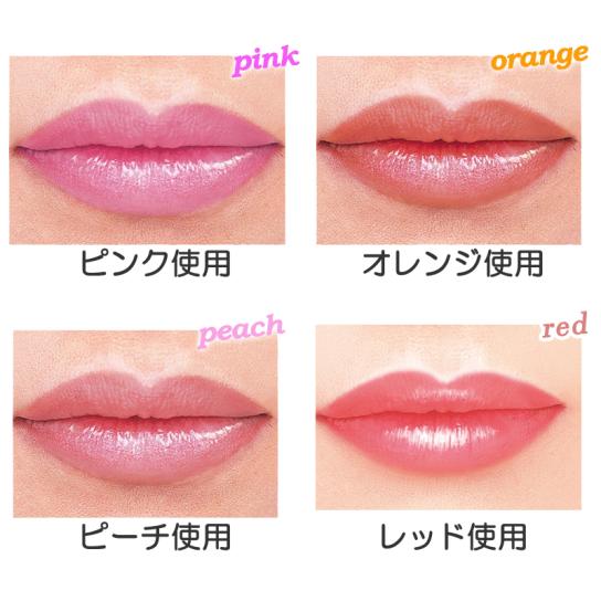 - ●直接塗ると自然な発色に。重ね塗りや、リップブラシを使ってたっぷり塗ると発色がアップします。
