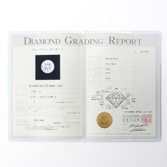 - ダイヤ(Hカラー・I1・フェアカット):約1ct