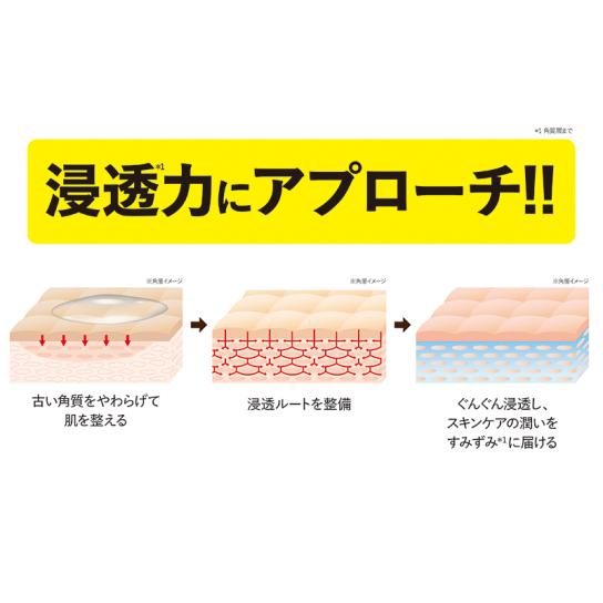 古い角質をやわらげることで肌を整えて角質層までのルートをつくり、次に使う化粧水の浸透をサポートしてくれます。
