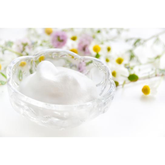 濡らしたボディタオルや泡立てネットなどに適量を取り、水分と空気を含ませて、十分に泡立て、泡をふんわりと肌に乗せるように洗ってください。