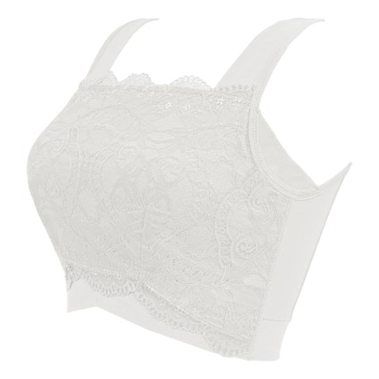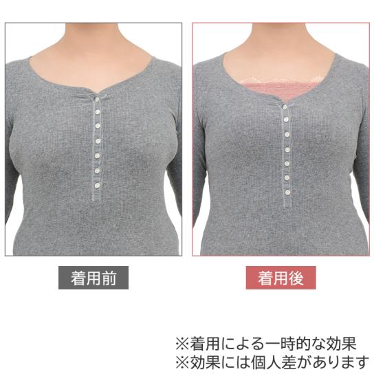 今回のために幾何学調の「番組オリジナルレース」を初採用。 光沢感がありつつ凹凸を抑えた刺繍レースを使用し、上品で落ち着いた印象に仕上げています。胸元は直線的なラインで、襟元からレースを覗かせて、コーディネートのワンポイントとしてもお使いいただけます。また、バストしっかり隠し、ちら見えも防ぎます。