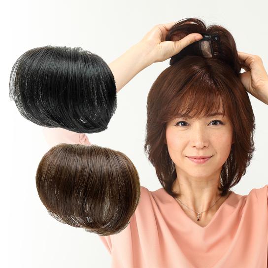 人毛100%なのでとても自然に馴染みます。重さは約22gと着けていることを忘れそうな軽さ。分け目の白髪、頭頂部をカバーしたいなど、女性が抱える髪のお悩みに応じてお使いいただけます。