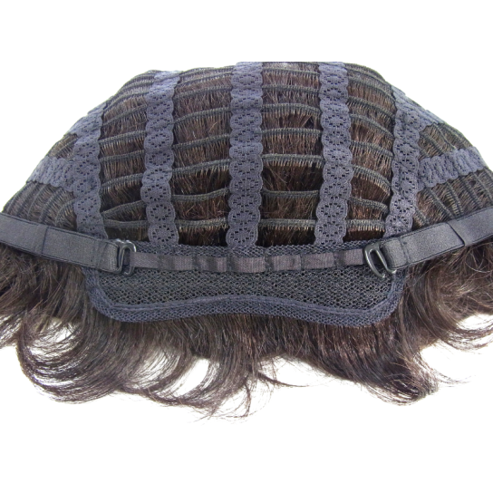 人毛100%なのでとっても自然。重さはわずか65gと軽量で付け心地ラクラク。後部にアジャスターのホックが付いているので、微調整も可能です。つむじを起点とした毛流れで、右分けにも左分けにも自由にスタイルが作れます。