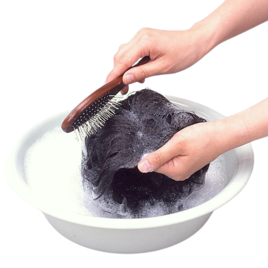 ※着けたままでの就寝やシャンプーは不可。洗う際はブラシで毛先からとかし洗いをしてください。(手洗いは毛もつれの原因となります)