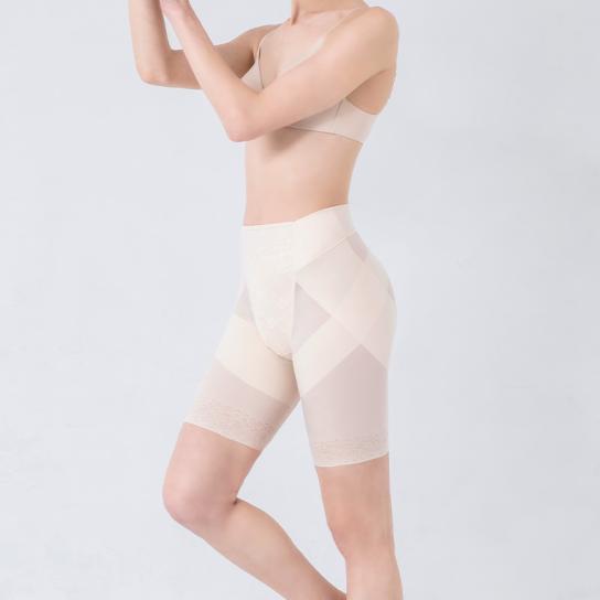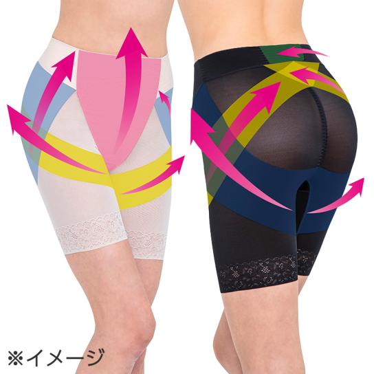 世界的な繊維メーカー・ライクラ社のライクラ繊維を採用。よく伸びるなめらかな生地が適度な補整力を実現。従来品から骨盤まわりの補整力はそのままに、柔らかいシルクタッチ生地で気持ちの良いはき心地を目指しました。