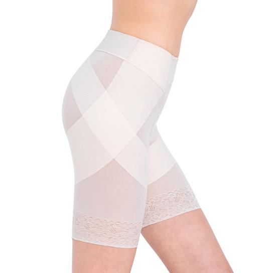 世界的な繊維メーカー・ライクラ社のライクラ繊維を採用。よく伸びるなめらかな生地が適度な補整力を実現。従来品から骨盤まわりの補整力はそのままに、柔らかいシルクタッチ生地で気持ちの良いはき心地を目指しました。