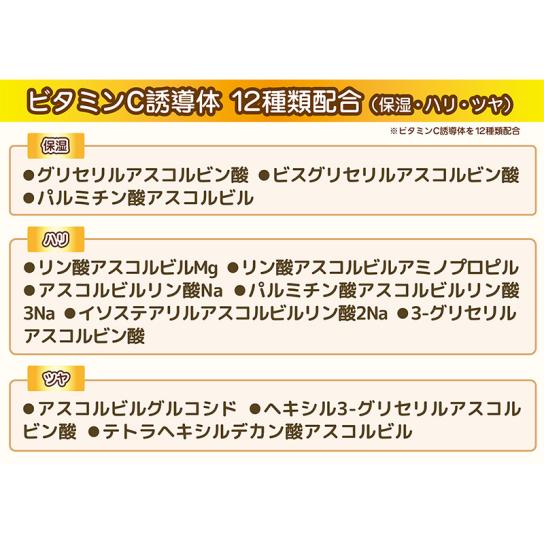 働きが違う12種類のビタミンCを配合し、ハリ・ツヤを強化!素早く浸透するものやゆっくり肌に留まるもの、全体へ行き渡ることに優れているものなど多種類を配合しました。