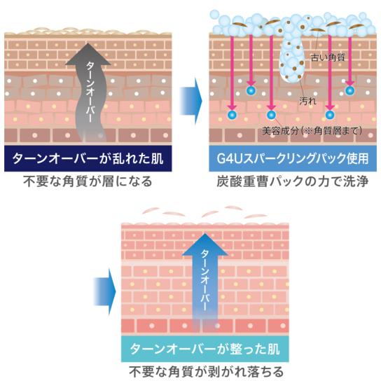 クリーム状のパックがお肌にのせた瞬間から泡状へ変化し、肌に密着して角質ケアをサポートします。こすらず使用できるため、摩擦を避けたケアがしやすい処方です。