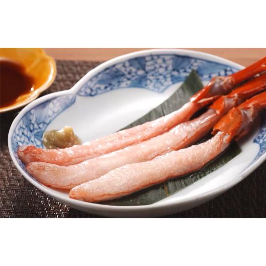 新鮮な「北海道産紅ズワイガニ」の、はさみの次の一番太い第一脚肉だけを使用。1杯から2本しか取れない希少なサイズだけを集めて、食べやすいポーションに加工しました。