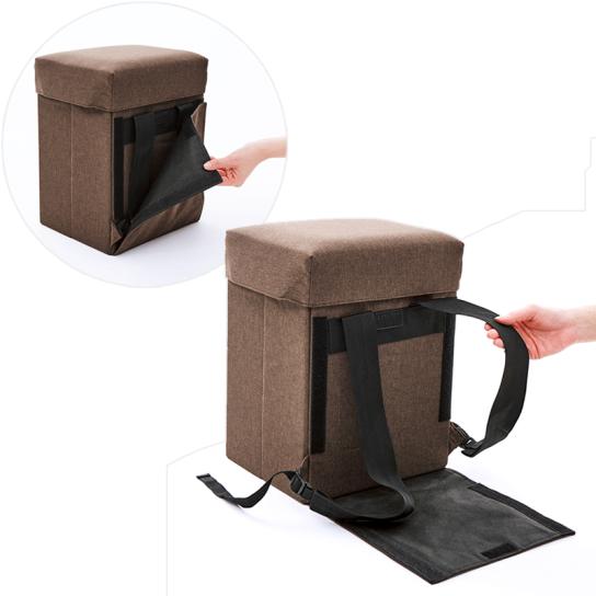 座れる・しまえる・持ち出せる!防災用品収納チェアがリュックに変身