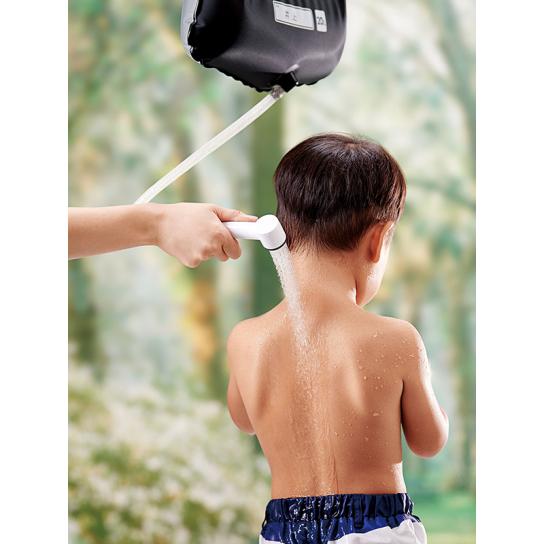 押すだけで水が出る!太陽光で温める大容量ポータブルシャワー。