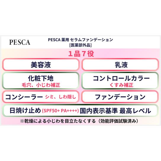 人気エステサロン「ペスカ」が手掛けた、約92%以上の美容成分が配合されたスキンケア発想の薬用美白(※)美容液ファンデーション。