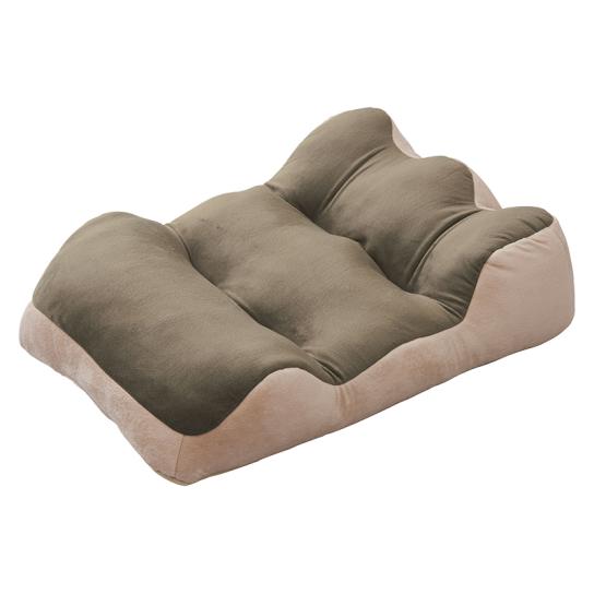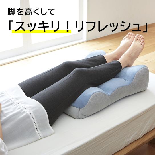 脚のカーブに沿ってフィットする形状で、布団と腰のすき間を埋め、眠っている間の腰への負担をやわらげるサポートクッション。