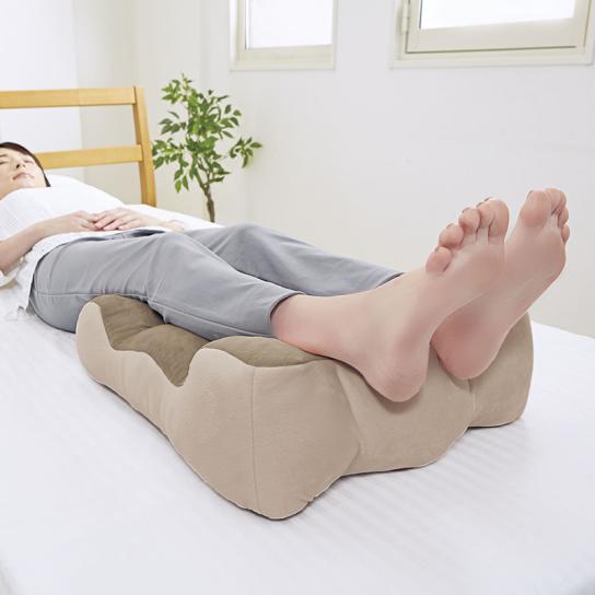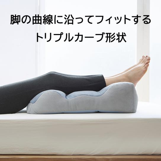 脚の曲線に合わせた形状で、横向き・仰向けの姿勢でも自然にフィットしやすいデザイン。身体に触れる面を安定させ、寝ている間の姿勢を支えます。