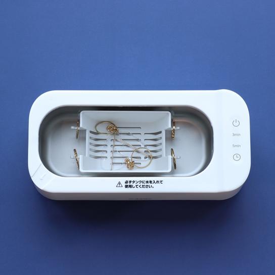 水を入れて洗浄したいものをセットし、3分または5分のタイマーを押すだけで超音波振動による洗浄が可能です。細かな部分に触れにくいアイテムのお手入れにも利用できます。