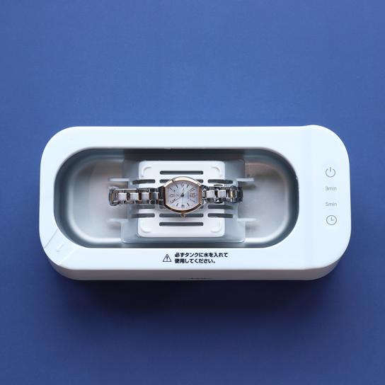 日常的に使用するメガネやアクセサリー、時計などを水と超音波でお手入れできる家庭用洗浄器。コンパクトなサイズで扱いやすく、タイマー機能付きで使い方もシンプルです。