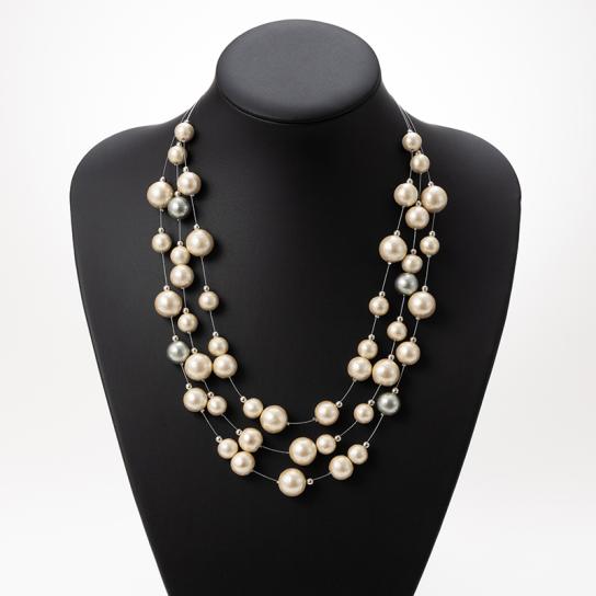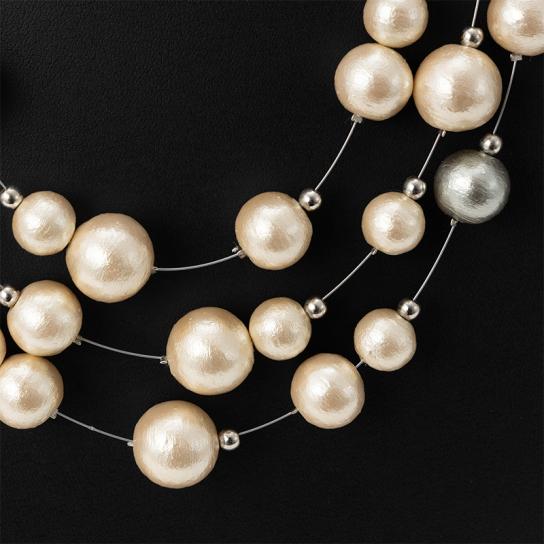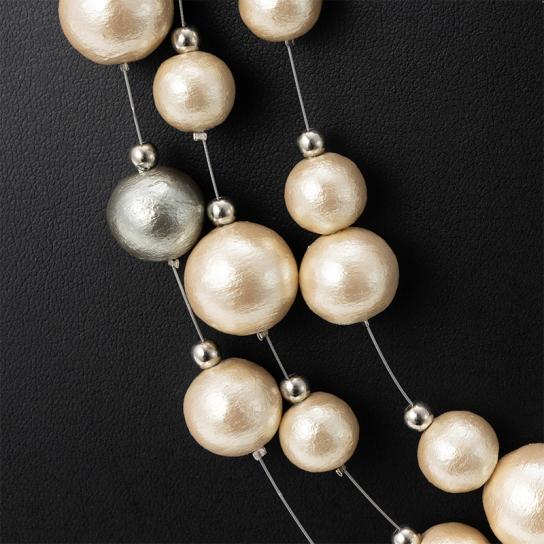 - [3連ネックレス] コットンパール(キスカ:約10mm/12mm/14mm、グレー:12mm)、ステンレス、マグネット、樹脂