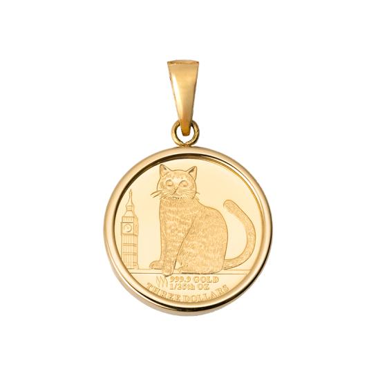 オーストラリア・パース造幣局製造の1/25オンス純金コイン。表面にはエリザベス2世の肖像、裏面には猫(ブリティッシュショートヘア)とロンドン風景をデザイン。