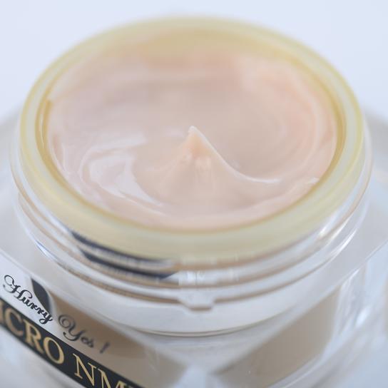 NMN以外にも、ハリ・ツヤ・潤いの「ヒトサイタイ間葉幹細胞順化培養液」、ハリ・ツヤ成分の「リポフラーレンN」と「レチノール誘導体」、ツヤ成分の「ビタミンC誘導体」・「リンゴ果実培養細胞エキス」・「モモ葉エキス」を配合。本気のエイジングケア(※)に取り組む方にぜひ使っていただきたいクリームです。