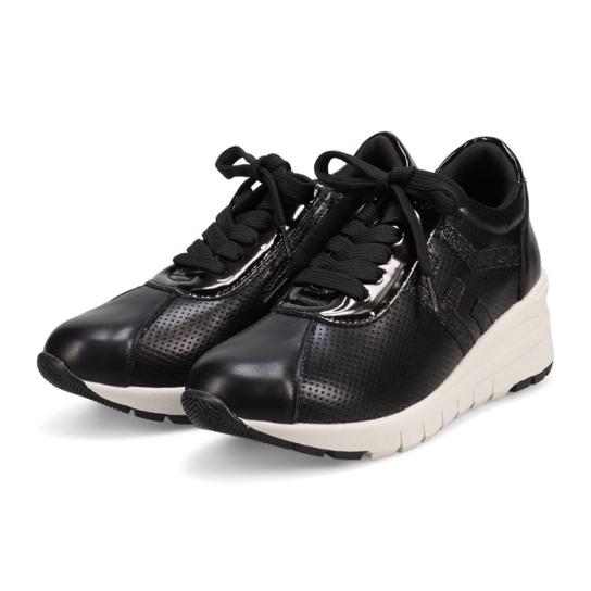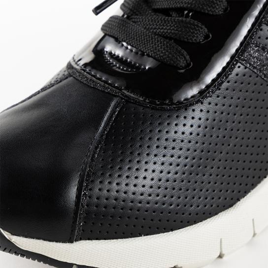 「スムース」・「パンチング」・「ラメ」の3つの異素材を組み合わせた、目をひくデザイン。ヒロココシノ ファムらしい、オシャレで個性的なバランスが魅力です。