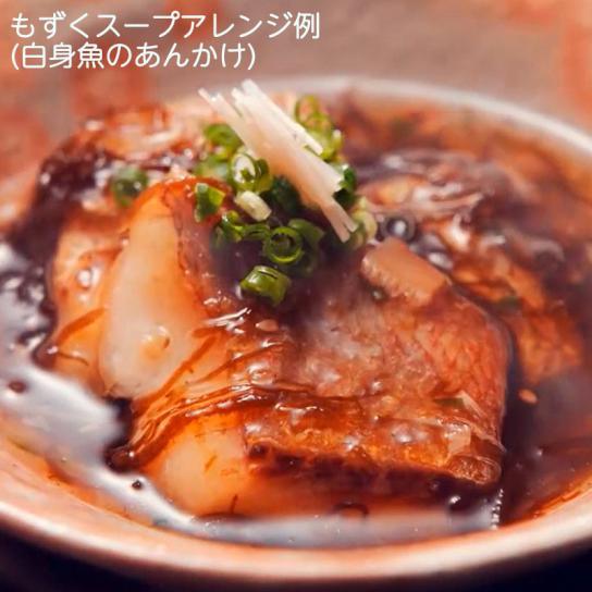 しっかり味付けされたお出汁の風味と、歯ごたえのあるコリコリ食感が特徴的な沖縄県産の「太もずく」を使用。
