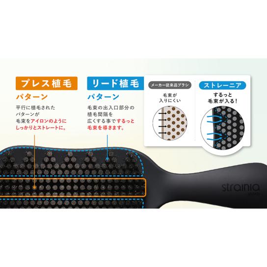 入口部分が広い“Yプレス構造”によって、髪をやさしく導きながら毛束を少しずつ整え、負担をかけずにまとまりやすい状態へ。導入エリアには柔らかい植毛、プレスエリアには硬めの植毛を使い分け、自然な流れで力が加わるようにすることで、スムーズに髪を伸ばして整えられるよう工夫しています。