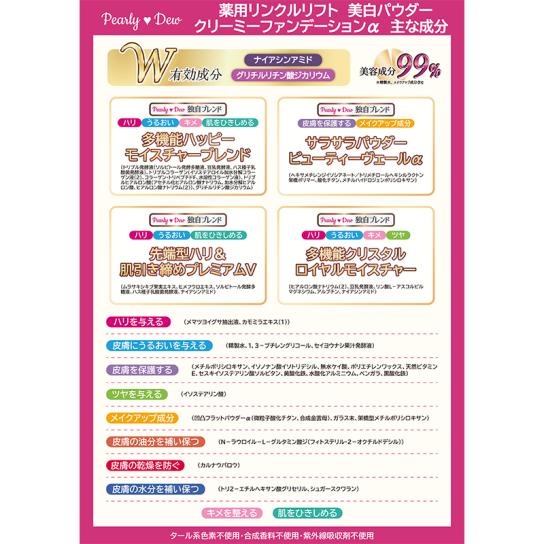 W有効成分配合!(*1)薄付きなのにしっかりカバー!シワ改善・美白(*2)・保湿ケアを兼ねた薬用クリーミーファンデーションでメイクしている間中ツヤツヤ美肌&エイジングケア♪(*3)