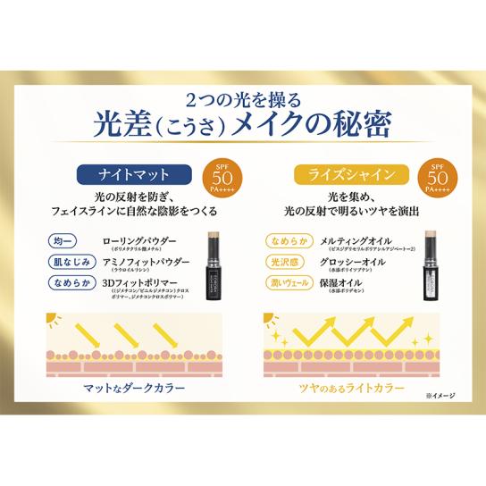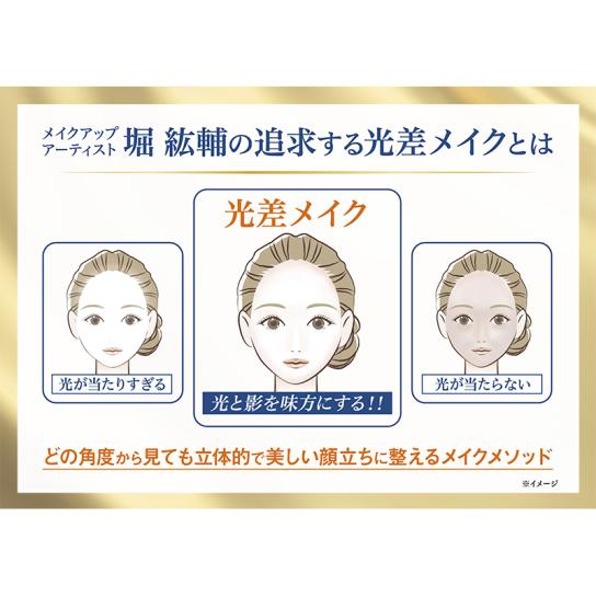 光の差を活かした「光差(こうさ)メイク」は、ファンデーションを使い分けることで、当たる光の違いを活かした立体感を演出。気になるシミやくすみをカバーしながら、すっきりとした印象を目指します。