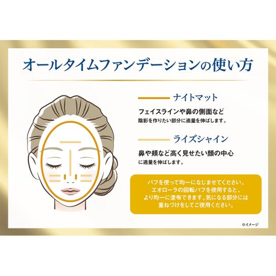 エオローラの回転パフを使用すると、より均一に塗布できます。気になる部分には重ねづけをしてご使用ください。