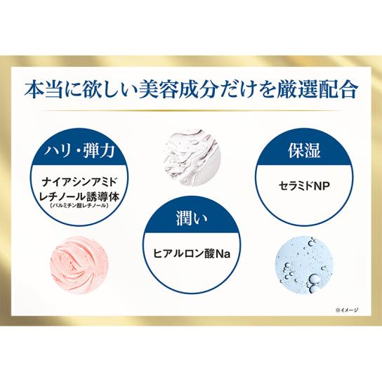 - ジメチコン、ジフェニルシロキシフェニルトリメチコン、トリエチルヘキサノイン、メトキシケイヒ酸エチルヘキシル、セレシン、カルナウバロウ、ポリメタクリル酸メチル、セスキイソステアリン酸ソルビタン、酸化亜鉛、ビスジグリセリルポリアシルアジペート-2、(ジメチコン/ビニルジメチコン)クロスポリマー、マイカ、ラウロイルリシン、ジメチコンクロスポリマー、ヒドロキシアパタイト、トコフェロール、ハイドロゲンジメチコン、ナイアシンアミド、ヒアルロン酸Na、パルミチン酸レチノール、コーン油、セラミドNP、酸化チタン、酸化鉄、タルク、水酸化Al