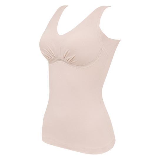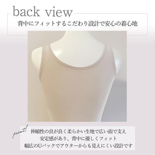 前身頃は2重構造で締めつけずにお腹をカバー。背中は面で広く支える1枚仕立て。安定感&段差レスの美シルエットに整えます。