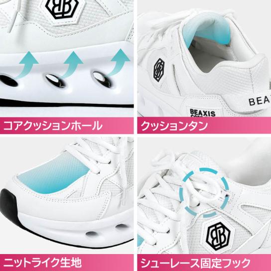 ・シューレース固定フックにより、歩行時のズレを抑え、安定感をサポート。