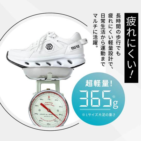 ・Lサイズ片足約365gの軽量設計で、長時間の歩行でも疲れにくい仕様。 -