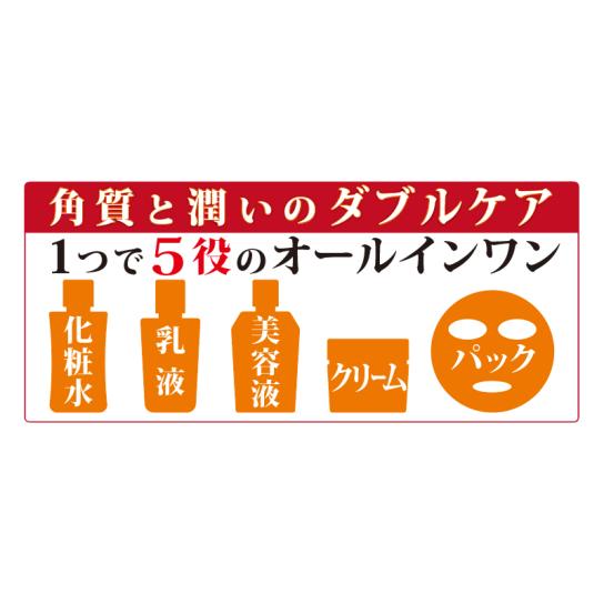 化粧水・乳液・美容液・クリーム・パックの5役を担うオールインワンタイプ。手軽にスキンケアを進めたい方や、忙しい日のケアにも向いています。すっとなじみ、ベタつきにくい使い心地です。
