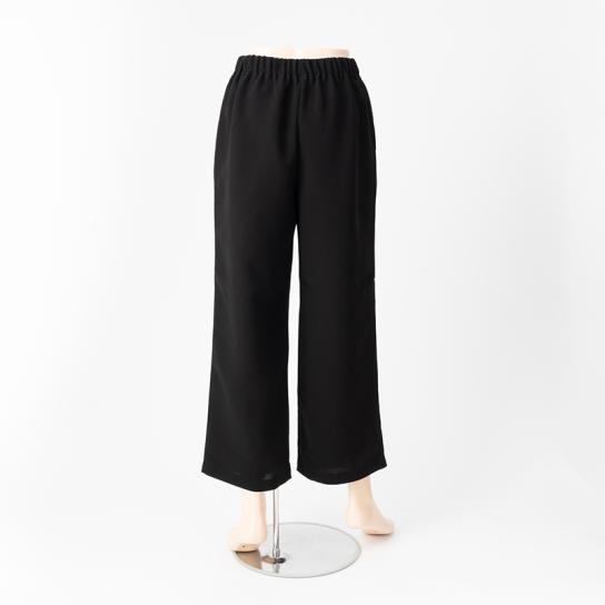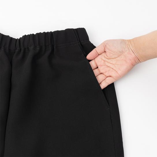 ワイドパンツは落ち感のきれいな素材で、体形を拾いにくいエレガントなシルエット。両サイドには便利なポケット付きで、実用性も◎。ポリエステル100%素材でシワになりにくく、洗濯機洗い可能。オールシーズン活躍するセットアップです。