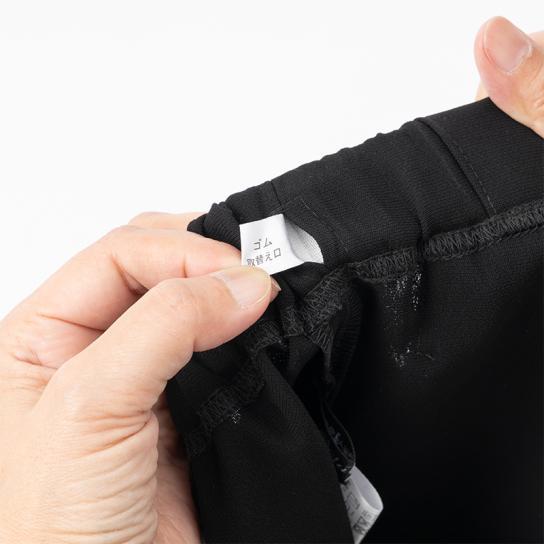 トップスは前開きファスナー仕様で脱ぎ着が簡単。ゆったりシルエットで締め付け感がなく、長め丈なのでお腹やお尻まわりをすっぽりカバーします。パンツはウエスト総ゴム仕様で、ゴム替え口付きのためサイズ調整もしやすく、長く快適に着用いただけます。