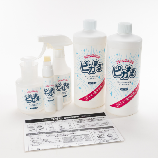 本品に加え、用途別に使い分けできる3種類のボトルがセット。スプレーボトルは広い範囲の掃除に、プッシュポンプボトルは日常の拭き掃除に、ペン型ボトルは衣類の部分汚れケアでの使用がおすすめです。