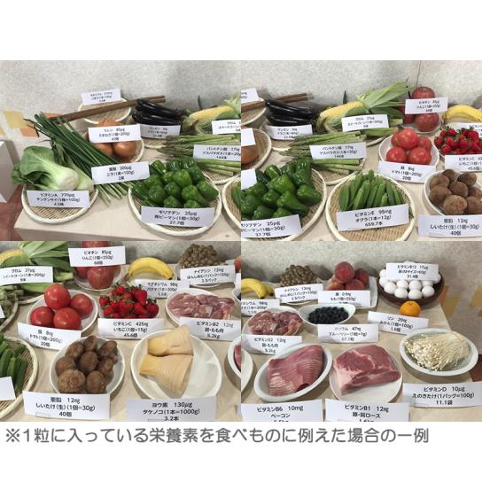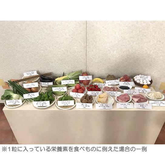ビタミンC 425mg、ビタミンP 21mg、ビタミンE 13mg、ビタミンA 770μg、セレン 80μg、モリブデン 25μg、ビタミンD 10μg