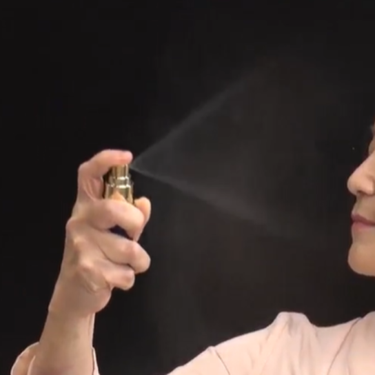 よく振ってから顔から20cmほど離し、5~8プッシュかけたらそのまま乾くまで数分待つだけ。スプレーをゆっくりプッシュすると、乳液状に出てくるので気になる部分にピンポイントで重ねづけも◎。重ねづけすることでハリ感を調整することが可能です。