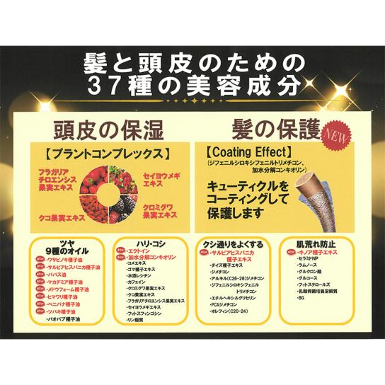・頭皮の保湿やハリ・コシ・ツヤ、肌荒れ防止など37種の美容成分配合