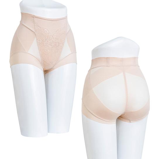 伸縮性のある生地を使用することで補整しながら快適で滑らかなはき心地を実現。さらに、より立体的に補整できるようにラインを調整。お腹まわりは食い込みにくく、腰まわりはしっかり包み込む構造に仕上げています。