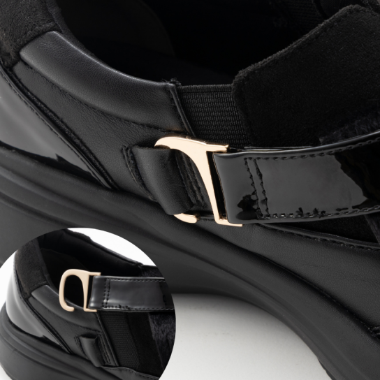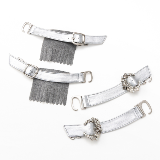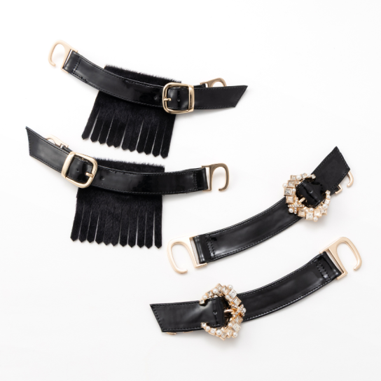 革靴風スリッポン、ビジュー付きベルト、ハラコ風フリンジベルトの3種類のデザインを1足で楽しめます。カジュアルからドレッシー、冬の装いまで幅広くご使用いただけます。